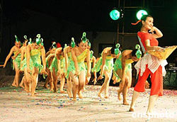 九月九日晚上,重慶市云陽新縣城云陽實(shí)驗(yàn)小學(xué)大操場(chǎng)上,全縣教師四百六十余人出席隆重集會(huì),慶祝第二十個(gè)教師節(jié)的到來,并與三千多市民群眾一同觀看演出,家長(zhǎng)、學(xué)生成了晚會(huì)的忠實(shí)觀眾。圖為教師們表演的民族舞蹈。作者:饒國(guó)君