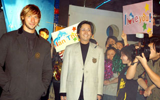 據(jù)主辦方介紹,9月以來(lái),索普為Sony產(chǎn)品拍攝的電視廣告和平面廣告在上海、北京、廣州火熱播映。索普此次應(yīng)索尼公司的邀請(qǐng)來(lái)到中國(guó),將作為Sony產(chǎn)品代言人參加一系列活動(dòng)。雖然索普并非第一次來(lái)華,而且許多媒體和Fans已經(jīng)有一定的心理準(zhǔn)備,但是當(dāng)索普亮相的瞬間,還是引來(lái)陣陣尖叫和騷動(dòng),成為名副其實(shí)的“菲林殺手”。