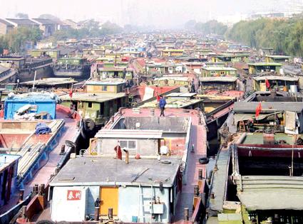 在江蘇常州東郊三號(hào)橋至九號(hào)橋的河段,短短3公里長(zhǎng)的運(yùn)河,竟來(lái)來(lái)往往堵了600多條船。岸邊一位姓王的船員說(shuō),他們的船是去無(wú)錫送石材的,在這已經(jīng)堵了整整兩天,已經(jīng)延誤工期了。盡管目前船上的水和生活用品還勉強(qiáng)可以維持,但隨著后面的船源源不斷地駛來(lái),滯留的船越聚越多,還不知道要等多久呢!