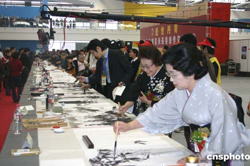 中新網(wǎng)11月6日電(記者邱觀史)為期三天的“中日書法繪畫交流大展”6日在美麗的太湖之濱江蘇無錫拉開帷幕。百名中日書畫家展示他們傾心裝做的200余幅作品,為觀眾獻上極富美感的視覺享受。中國文化部副部長?巳食鱿_幕式并發(fā)表講話。