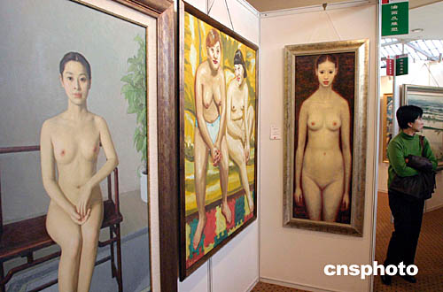 十一月七日,中國嘉德二零零四秋季拍賣會舉行中國油畫及雕塑專場拍賣,創(chuàng)下總成交三千七百余萬元人民幣的單場中國油畫拍賣成交紀(jì)錄。中國油畫的收藏與拍賣正在升溫,拍賣成交價格逐年攀升,其投資價值受到越來越多投資者的重視。圖為拍賣預(yù)展會上的中國油畫作品。中新社記者:張煒