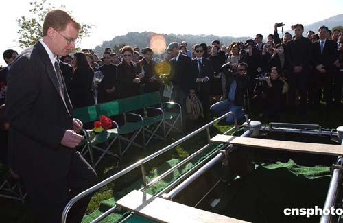 當(dāng)?shù)貢r間十一月十九日,美華裔女作家張純?nèi)绨苍嵩诩又萋逅拱⑼兴故械摹疤焯弥T”墓園。她的丈夫、父母、弟弟以及眾多仰慕者一起為她送行。作者:陳鋼