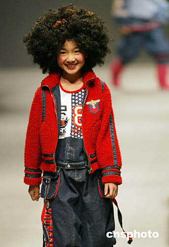 二零零四年十一月二十二日,中國(guó)國(guó)際時(shí)裝周的一場(chǎng)童裝流行趨勢(shì)發(fā)布會(huì)在北京舉行。中新社記者:盛佳鵬