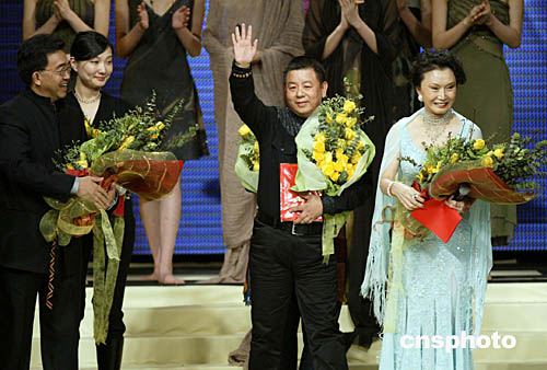 中國國際時(shí)裝周第八屆中國時(shí)裝設(shè)計(jì)“金頂獎”十一月二十五日晚在北京揭曉,“云敦至尊”品牌設(shè)計(jì)師計(jì)文波(中)摘得桂冠。中新社記者:盛佳鵬