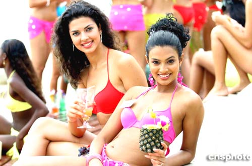 在12月4日舉行第54屆世界小姐總決賽前夕,為拍攝宣傳短片,各國美女身著泳裝在三亞開沙灘派對(duì),盡情感受三亞熱情風(fēng)情。作者:喜來登