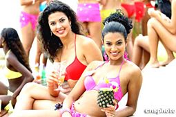 來自世界各地的美女云集三亞,在藍天碧海之間,如花似蝶,向地球村的人們展示她們的美麗。婀娜的身姿、惹火的身材、調(diào)皮的笑容,在流行的節(jié)拍里,世姐們帶來了一種久違的性感。