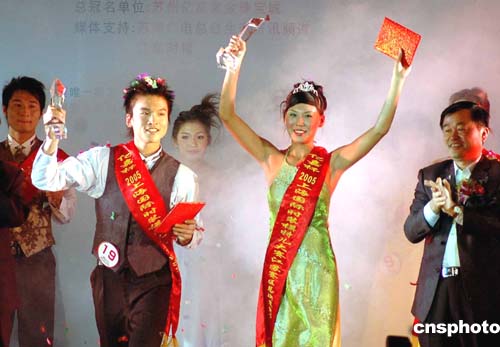 12月2日晚上,“億嘉”杯2005上海國(guó)際時(shí)裝模特大賽江蘇賽區(qū)決賽在常熟舉行。來(lái)自上海和江蘇等地的27位男女選手在經(jīng)過(guò)休閑裝、晚裝、唐裝、泳裝的展示后,決出男女冠軍,獲得參加明年4月在蘇州舉行的中國(guó)賽區(qū)總決賽資格。作者:蔣振江