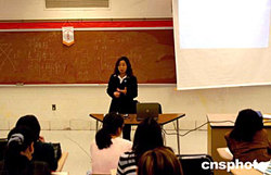 由中國(guó)海外交流協(xié)會(huì)組織的中國(guó)師資培訓(xùn)團(tuán),目前正在美國(guó)為中文學(xué)校教師進(jìn)行漢語教學(xué)培訓(xùn),受到當(dāng)?shù)氐臍g迎。圖為南京師大國(guó)際文化教育學(xué)院副教授錢玉蓮,在為華盛頓希望中文學(xué)校的教師開設(shè)講座。作者:余東暉