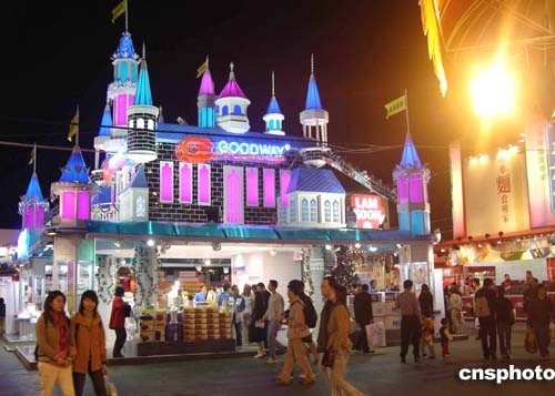 圖為經營小型家用電器的威馬企業(yè)參展攤位,外型如城堡入夜時分光芒四射。作者:洪少葵