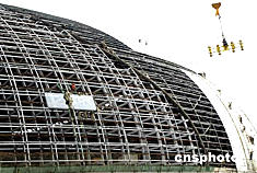 中新網(wǎng)5月27日電 據(jù)《新京報(bào)》報(bào)道,昨日下午3時(shí)左右,國(guó)家大劇院“巨蛋”橢球屋面的第一塊玻璃幕墻成功安裝。此次安裝的玻璃幕墻是國(guó)家大劇院最先安裝的外墻玻璃,預(yù)計(jì)這1126塊超白平板玻璃將在6月底之前全部安裝完畢。到時(shí)候,人們就可以透過這些超透明玻璃清晰地看到國(guó)家大劇院內(nèi)的一切景觀。