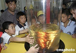 六月一日,幾名打工子弟在宋慶齡科技館觀看漩渦演示器。宋慶齡基金會(huì)專門撥款四十余萬元為科技館增添了一批科普活動(dòng)器材,先后邀請(qǐng)一百多名打工子弟免費(fèi)來此歡度“六一”。中新社記者:史利