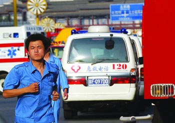 “他們都是嗆傷,傷勢比較輕!毕挛5時許,海淀區(qū)304醫(yī)院共收到9名京民大廈火災事故受傷人員,經(jīng)過半個小時的治診,已有8人離院。該院急診科值班護士在查閱了記錄后說,離院的8人都是自己走入診室的,只有留院治療的孫朝輝是被抬下救護車的。