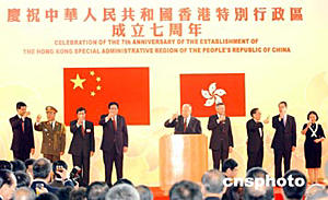 中新網(wǎng)7月1日電 今天是香港回歸七周年。香港特區(qū)政府今天早上舉行升旗儀式暨慶祝酒會,慶祝香港特別行政區(qū)成立七周年。