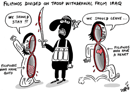 中新網7月25日電 在總統(tǒng)阿羅約的命令下,為協(xié)助解救在伊拉克被綁架的菲國人質克魯茲,菲律賓撤回了駐扎在伊拉克的維和部隊,盡管這一決定使美國深感失望。
