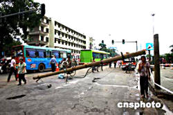八月十三日下午,廣西首府南寧市遭暴風(fēng)雨襲擊,電桿被折斷引發(fā)南寧市中華路居民區(qū)大面積停電。作者:蔣雪林