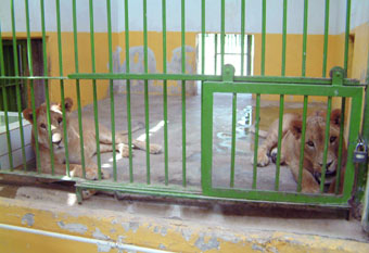 有30年飼養(yǎng)經(jīng)歷的達烏德說:“這些獅子的血統(tǒng)很好,但每個都很兇暴,喂食的時候非常難辦!边@些獅子都是非洲各國贈送給伊拉克的,原來被烏代豢養(yǎng)在他自己的宮殿內(nèi)。隨著薩達姆政權(quán)的垮臺,這些無主的獅子就被挪到動物園里來成為普通人的觀賞物了。 (章田/雅龍)