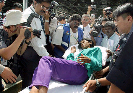 目前瑪拉瓦蒂只是足部受了點(diǎn)傷,沒(méi)有生命危險(xiǎn),而和她一起被海嘯卷走的丈夫是死是活,目前仍不得而知。(章田/雅龍)