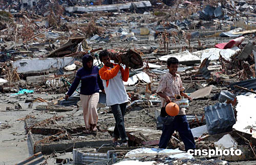 圖:印尼班達(dá)亞齊災(zāi)民陸續(xù)回到災(zāi)區(qū)整理家園
