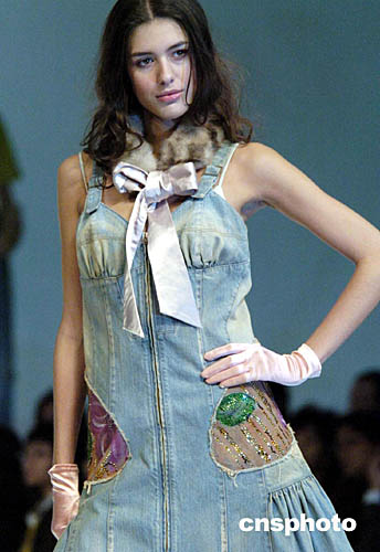 1月19日,香港會展中心舉行的“香港時裝節(jié)秋冬系列2005”上,模特在T型舞臺演繹“獨(dú)家時裝表演”專場的設(shè)計(jì)師最新服飾系列。作者:洪少葵