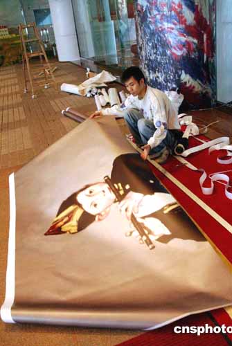 “法國印象派繪畫珍品展”將在2月5日在香港藝術館揭幕,即將亮相的47幅法國印象派名作已運抵香港藝術館布展,1月27日,工作人員張貼名畫海報《吹笛子的男孩》。作者:洪少葵