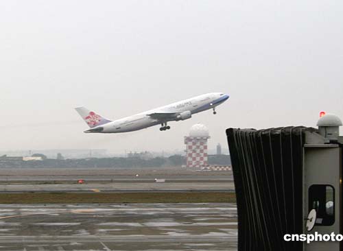 一月二十九日上午,首航北京的臺灣華航公司臺商春節(jié)包機從臺北起飛。作者:邢利宇