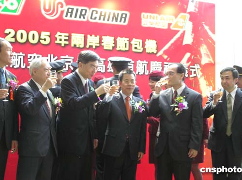 中國國際航空公司的臺商春節(jié)包機(jī)于二十九日上午十一時(shí)二十分許安全降落在臺灣高雄小港機(jī)場。這是五十六年來大陸民航班機(jī)首次飛抵臺灣地區(qū)的高雄市。