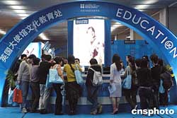 第十屆中國國際教育巡回展二月二十六日在北京開幕。眾多北京高校大學(xué)生在展臺(tái)前咨詢留學(xué)英國事宜。來自英國、法國、荷蘭香港等二十七個(gè)國家和地區(qū)的三百多所高校和教育機(jī)構(gòu)組團(tuán)參加了本次展覽。作者:鄒憲
