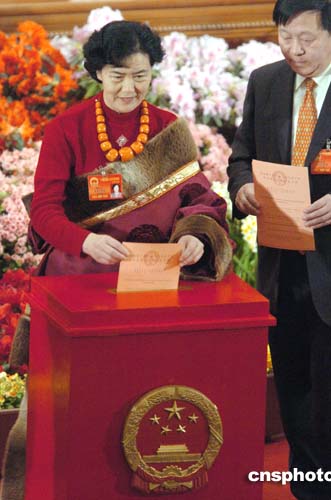 第四次大會(huì)執(zhí)行主席顧秀蓮主持會(huì)議。胡錦濤、吳邦國、溫家寶、賈慶林、曾慶紅、黃菊、吳官正、李長春、羅干等中國領(lǐng)導(dǎo)人出席了會(huì)議。會(huì)后大會(huì)主席團(tuán)將發(fā)表公告,公布今天的各項(xiàng)選舉結(jié)果。