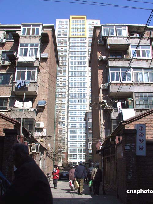 三月十八日,位于北京朝陽(yáng)區(qū)雙井附近的和平村,其破舊、丑陋的紅磚平房與身后的舊居民樓和新建的商品樓形成強(qiáng)烈反差。和平村是北京市目前面積最大的“城中村”,當(dāng)局正為改變和平村現(xiàn)狀進(jìn)行拆遷改造。由于北京市房?jī)r(jià)高昂,對(duì)于部分拆遷戶,當(dāng)?shù)卣雅c房地產(chǎn)公司達(dá)成協(xié)議,將向他們提供部分價(jià)格相對(duì)低廉的經(jīng)濟(jì)適用房。作者:納夢(mèng)月