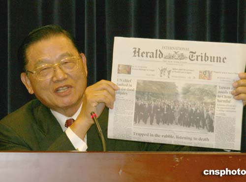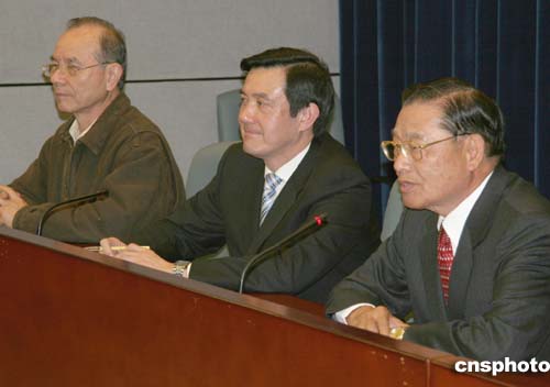 四月一日晚,中國國民黨參訪團完成在大陸五天四夜的行程,搭乘飛機返臺。圖為國民黨副主席江丙坤出席在桃園機場的記者會,他稱此行不僅是“緬懷之旅、經(jīng)貿(mào)之旅”,也是一次“搭橋之旅”。作者:趙江濤攝