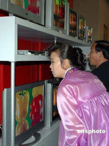 由朝鮮貿(mào)易省主辦的“第八屆平壤國(guó)際商品博覽會(huì)”五月十六日至十九日在朝鮮平壤三大革命展示館舉行,有來自世界各國(guó)的三百多家企業(yè)參展,這是朝鮮歷史上首次舉辦大規(guī)模的國(guó)際商務(wù)活動(dòng)。圖為朝鮮人參觀中國(guó)生產(chǎn)的液晶電視展臺(tái)。作者:涵喬