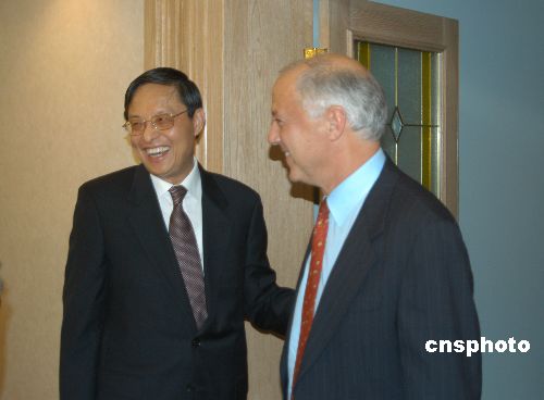 圖:周文重與新任美中關(guān)系全國委員會(huì)主席交談