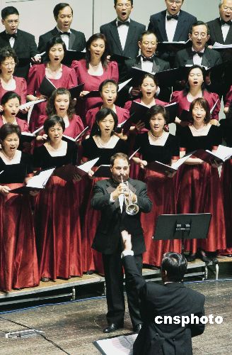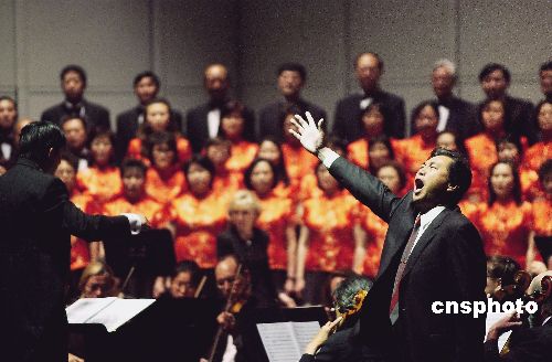 六月十二日,為紀念抗日戰(zhàn)爭勝利六十周年,美國硅谷愛樂合唱團,青青合唱團,圣荷西華人合唱團,圣荷西知青合唱團在美西圣荷西藝術(shù)演出中心聯(lián)合演出《黃河大合唱》。作者:陳鋼