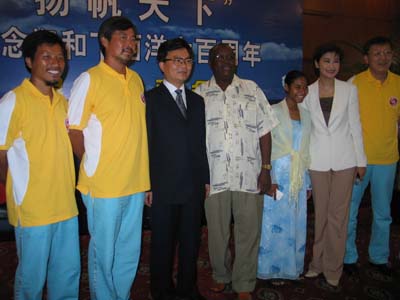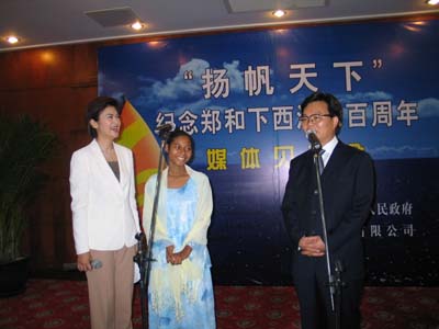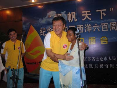 去年8月8日,由鳳凰衛(wèi)視的四位隊員駕駛的鳳凰號單桅帆船啟程,沿著鄭和寶船的路線去探尋鄭和的足跡。他們于今年3月16日抵達鄭和船隊的終點—肯尼亞,并在當?shù)氐奶皆L中,發(fā)現(xiàn)了鄭和船隊水手的后裔、18歲的烏瓦瑪卡•沙里夫,并對她的家庭進行了追訪和報道。