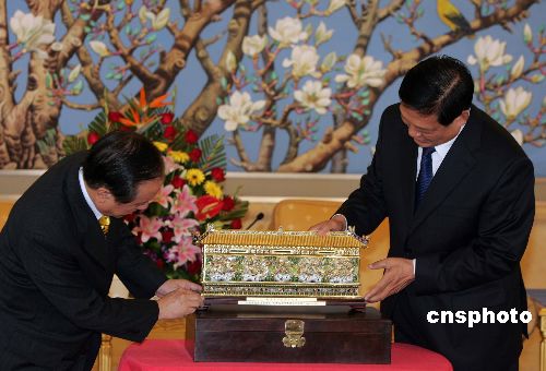 劉淇向郁慕明贈送禮品