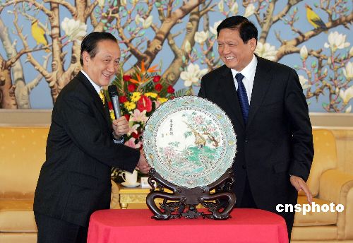 圖:劉淇與郁慕明互贈禮品