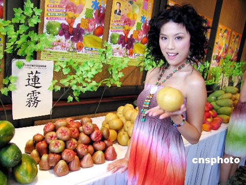7月14日,臺(tái)灣農(nóng)業(yè)策略聯(lián)盟發(fā)展協(xié)會(huì)與多個(gè)農(nóng)貿(mào)團(tuán)體在香港舉行“臺(tái)灣精品水果品嘗博覽會(huì)”,向香港市民推介臺(tái)灣豐富的水果資源。圖為模特展示臺(tái)灣優(yōu)質(zhì)新鮮水果。作者:洪少葵