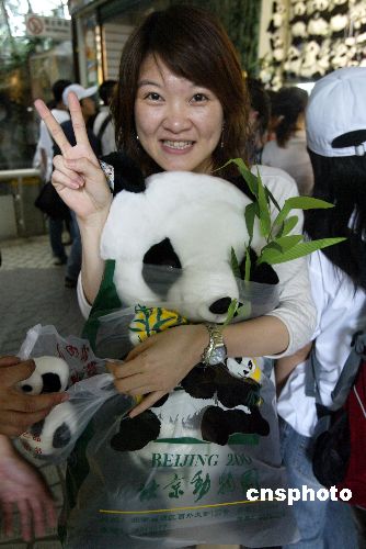 臺灣東海大學的李姓女生進了熊貓館后,迫不及待地向熊貓房的玻璃罩跑去,手里拿著照相機拍個不停!耙郧爸皇窃陔娨暽峡吹叫茇,這里的熊貓顯得很懶,而且茸毛有點臟!彼M芾韱T能每天給熊貓洗澡。臨走時,她還選購了一只玩具熊貓,并告訴記者,要把玩具擺在床前,每天都能看到。