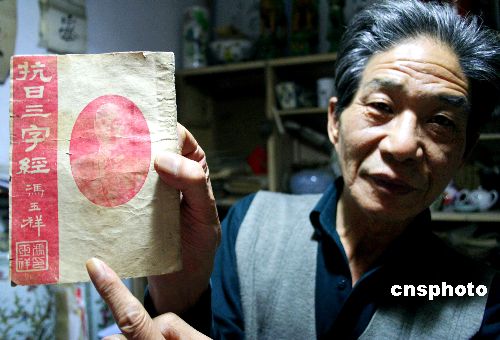 8月23日,山西省臨汾市一位收藏愛好者展示了一本抗日三字經(jīng)。這本三字經(jīng)是1939年南京政府記者老向編著的,馮玉祥將軍提的書名。當(dāng)時在武漢、西安、延安印刷了八版,抗日軍隊人手一冊,主要激勵人民抗日報國,是一本對后人有深刻教育意義的好藏品。作者:張旦