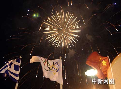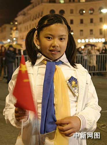 亞里士多德廣場(chǎng)的慶典儀式上人潮涌動(dòng),上千市民匯聚于此親眼目睹北京奧運(yùn)圣火的到來。截至目前,塞薩洛尼基的慶典在舞臺(tái)規(guī)模和參與人數(shù)上都堪稱圣火傳遞之最。近百人的童聲合唱團(tuán)由一位華人小姑娘、十歲的王佩珺領(lǐng)銜,為觀眾帶來了純潔、恬靜的美妙感受。漫天的禮花在空中綻開,將整個(gè)城市籠罩在節(jié)日的喜慶氣氛中。