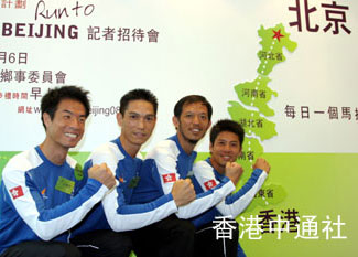 中新網(wǎng)5月6日電 據(jù)香港中通社報道,為了挑戰(zhàn)自我極限,香港三位長跑精英和一位區(qū)議員,把握著中國首次舉辦奧運這個極具意義的機遇,決心以他們無比的意志,計劃花2個月時間,從香港跑馬拉松到北京,與祖國的同胞一同迎接奧運。