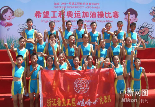 中新網(wǎng)杭州7月31日電(見習(xí)記者 張潔)近日,在 “加油!2008——全國希望工程快樂體育運動會”上,浙江省娃哈哈希望小學(xué)代表隊一舉拿下了全國奧運加油操特等獎,以一種特殊的方式為北京奧運會加油,這讓貧困山區(qū)的孩子享受體育的快樂,感受奧運的濃厚氛圍。