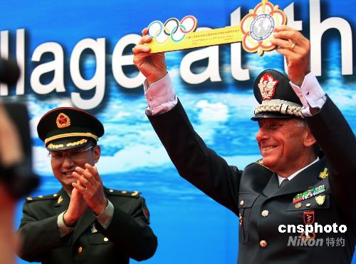 圖:國(guó)際軍體村開(kāi)村儀式上遞交村門鑰匙