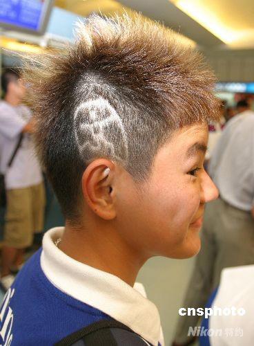 8月7日,參加北京奧運的中華臺北代表隊女壘隊啟程,擔(dān)任女壘隊第一棒和守左外野的賴孟婷在發(fā)型上作了特殊造型,剃出“中國印”。 中新社發(fā) CNAsports 攝