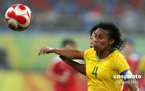 圖:巴西隊(duì)隊(duì)長塔尼婭頭球爭頂