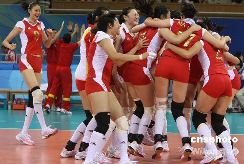 圖為獲勝后,隊員們擁抱慶祝。 中新社發(fā) 武仲林 攝
