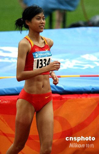 北京奧運(yùn)會(huì)田徑比賽8月21日在“鳥(niǎo)巢”冒雨舉行,中國(guó)女子跳高選手鄭幸娟在大雨中三跳未能通過(guò)1.93米的資格賽高度,無(wú)緣決賽圈。 中新社發(fā) 任晨鳴 攝