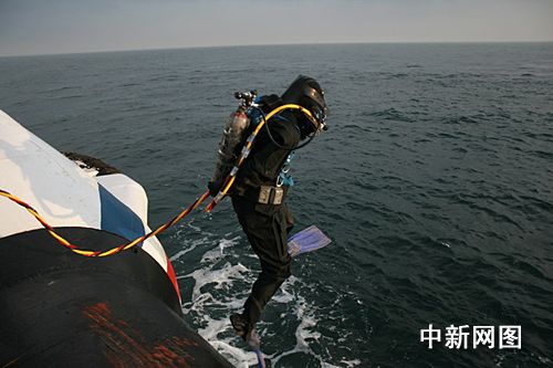 中國(guó)潛水員在圣文森特籍集裝箱船“金盛”輪與韓國(guó)輪“金玫瑰“碰撞沉沒(méi)海域,進(jìn)行大規(guī)模搜救。
