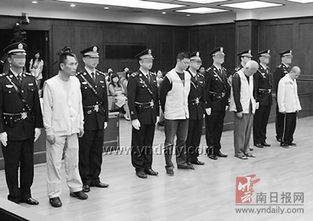 6月26日,昆明中院對臺灣省人鐘萬億販毒案依法作出一審宣判,以走私、販賣、運輸毒品罪判處主犯鐘萬億死刑,剝奪政治權(quán)利終身,并處沒收個人全部財產(chǎn);判處被告人鐘溪洲死刑,緩期兩年執(zhí)行;判處被告人王俊鵬有期徒刑15年;判處被告人劉文嵩有期徒刑15年。