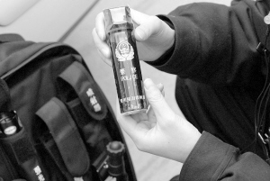 當(dāng)民警清查至酒店一個(gè)房間時(shí),房間內(nèi)的不法人員拒不開門接受檢查,并堵在房門處將門反鎖,民警幾次用鑰匙開門均未成功。民警見狀,果斷拆下房門“貓眼”,決定首次使用單警裝備中的催淚噴射器,制服抗拒的不法人員。只見一個(gè)管狀警用裝置,伸向了貓眼處,隨著發(fā)射命令的下達(dá),霧狀物質(zhì)隨即噴進(jìn)了屋中。這個(gè)管狀物品原來就是催淚噴射器,聽到屋中一陣響動(dòng)并伴有咳嗽聲后,民警立即沖開了房門,看到一男一女正抱頭蹲在地上,眼淚不斷的流出。此時(shí),兩人已經(jīng)失去抵抗能力,警方隨即將二人控制。